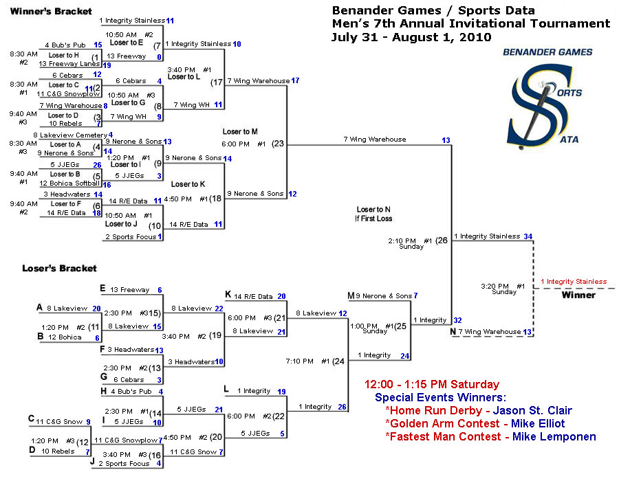 | Sat July 31 - Sun August 1, 2010 | Stats | Box Scores | Bracket | Photos | Contest Results | Rosters | |